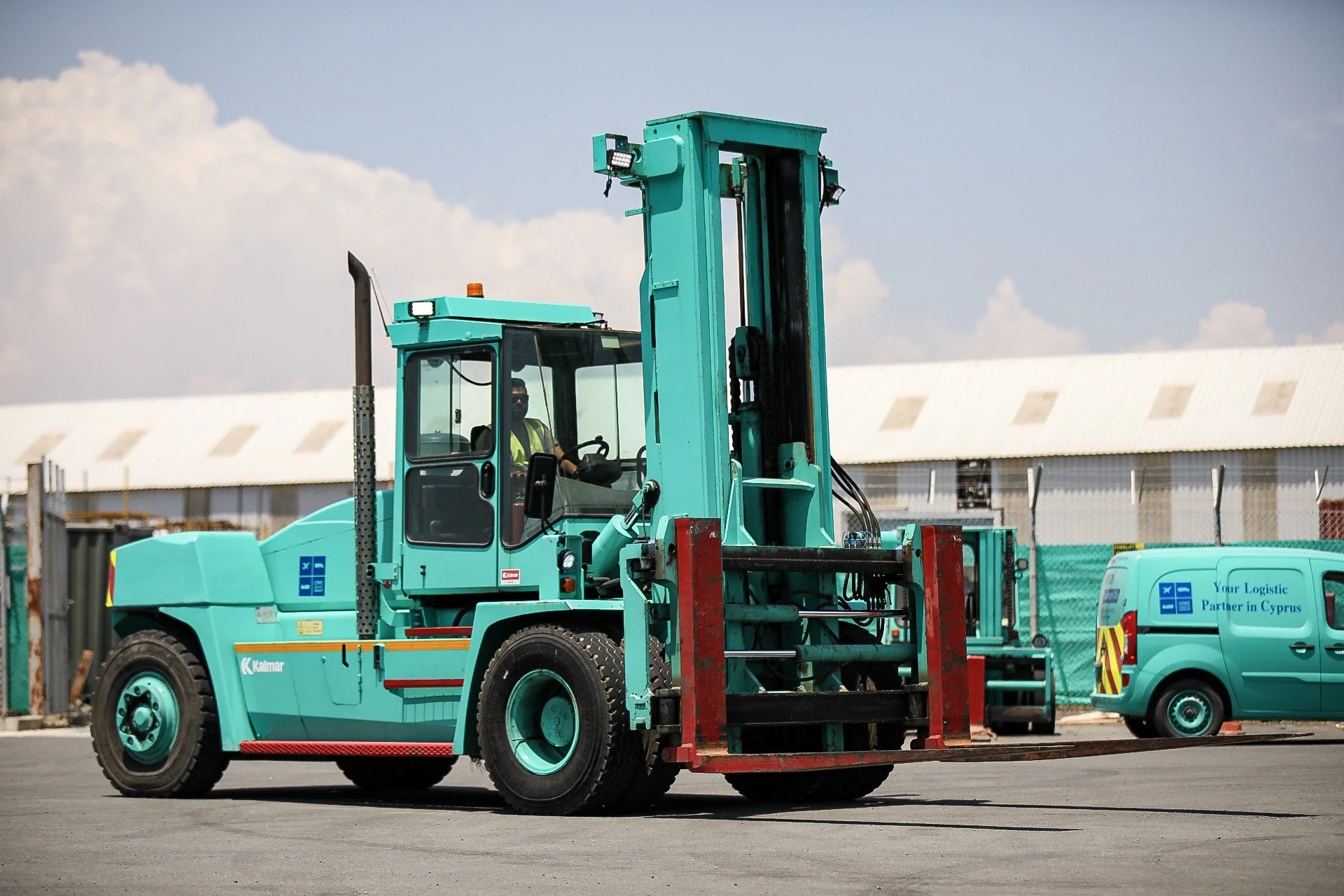 With a total width of 2000 mm, this forklift offers adaptability in maneuvering through diverse spaces. Traveling at a speed of 22 km/h, whether laden or unladen, it emphasizes efficiency in material transportation. The turning radius of 3.7 meters enhances maneuverability, and the construction height of 2590 mm reflects its robust build and design. The Kalmar DCE 80-9 signifies more than just a forklift; it's a symbol of Kalmar's commitment to delivering high-performance solutions for heavy-duty material handling challenges.
